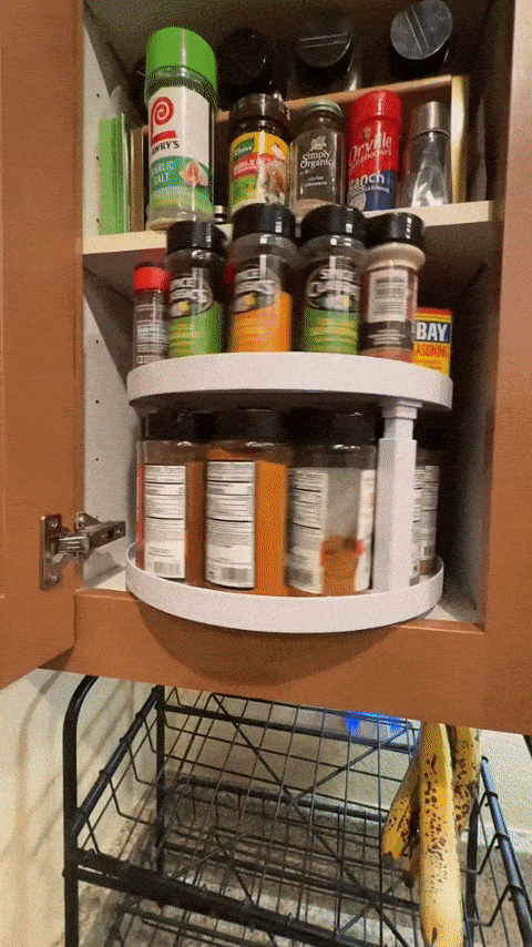 Είναι τα ντουλάπια της κουζίνας σας γεμάτα με βάζα μπαχαρικών και καρυκεύματα στοιβαγμένα και δυσπρόσιτα; Δυσκολεύεστε να βρείτε αυτό το ένα μπουκάλι θαμμένο πίσω από τα άλλα; Αυτή η οργανωτική θήκη Dual Spin Lazy Susan έχει σχεδιαστεί για να μεταμορφώνει τα ακατάστατα ντουλάπια και τα ντουλάπια σας σε έναν τακτοποιημένο, προσβάσιμο χώρο—κάνοντας τα πάντα ορατά και εύκολα στο πιάσιμο με ένα απλό γύρισμα.