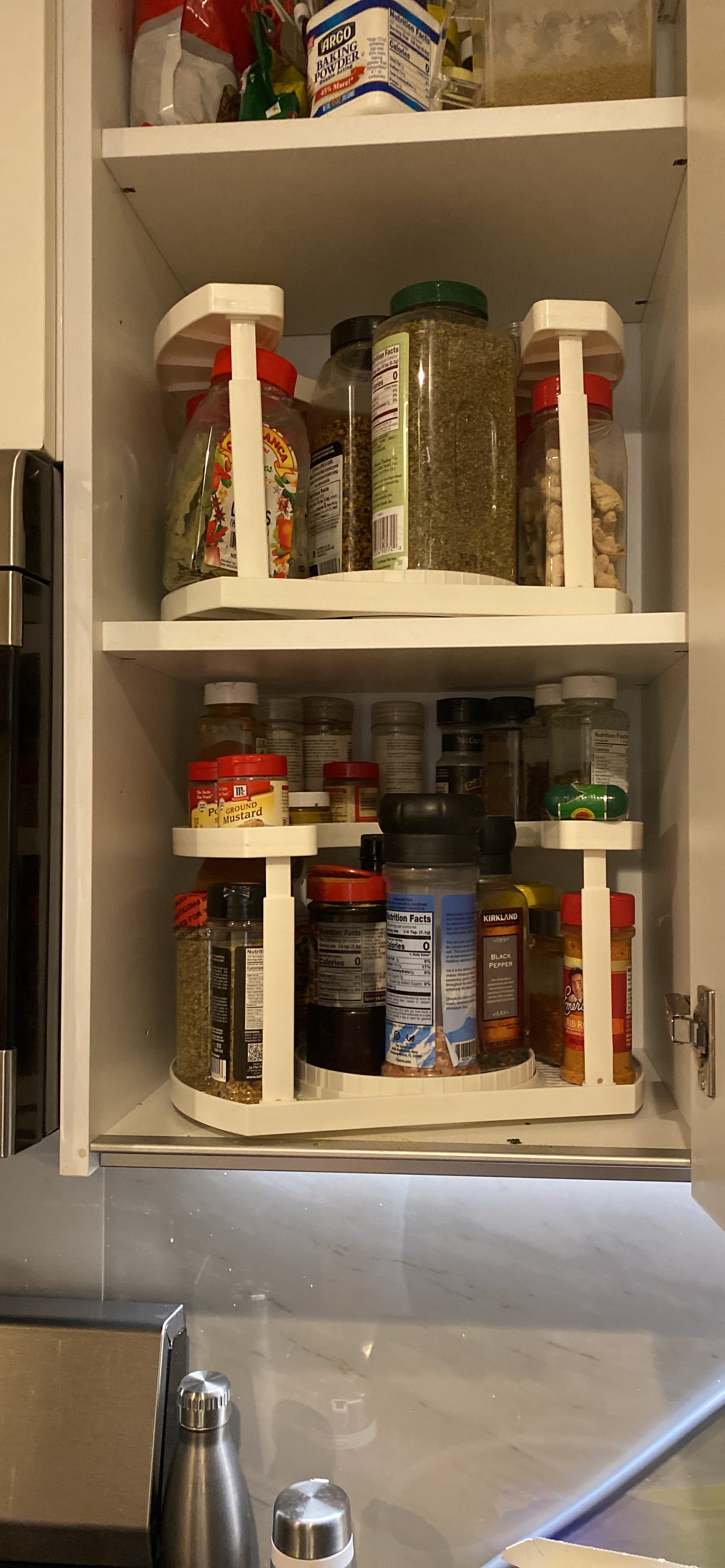 "This lazy Susan transformed my cluttered spice cabinet into an organized dream. Everything is visible and the spins are smooth!" — Angela M.